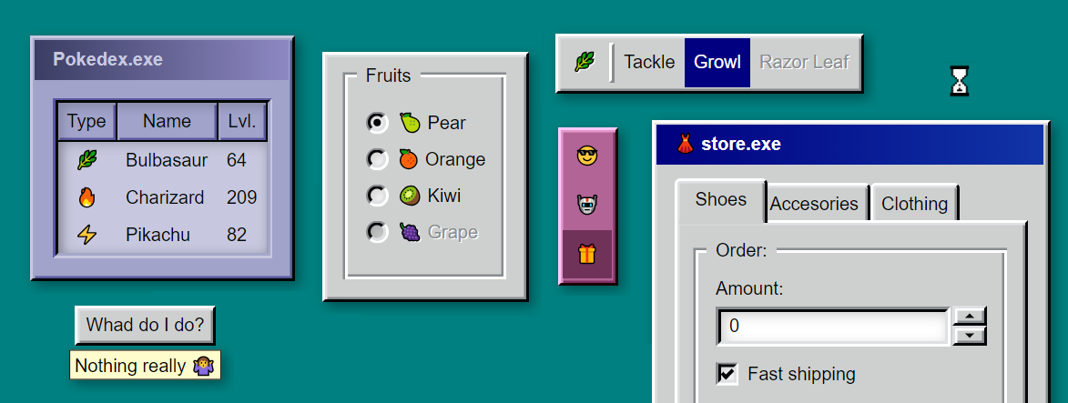 Коллекция из более чем 30 компонентов пользовательского интерфейса в стиле Windows 95 для React-приложений. Включает в себя средства выбора даты, кнопки, значки, ввод форм и множество других полезных элементов в ретростиле.