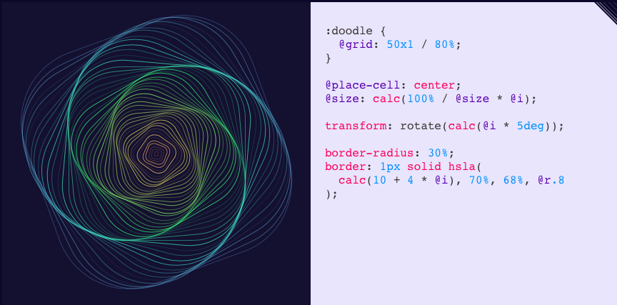 CSS doodle – это веб-компонент для рисования узоров с помощью CSS. Компонент будет генерировать сетку элементов div, которыми можно легко управлять с помощью CSS и создавать графические шаблоны или анимированные графики. Работает на последних версиях Chrome и Safary.
