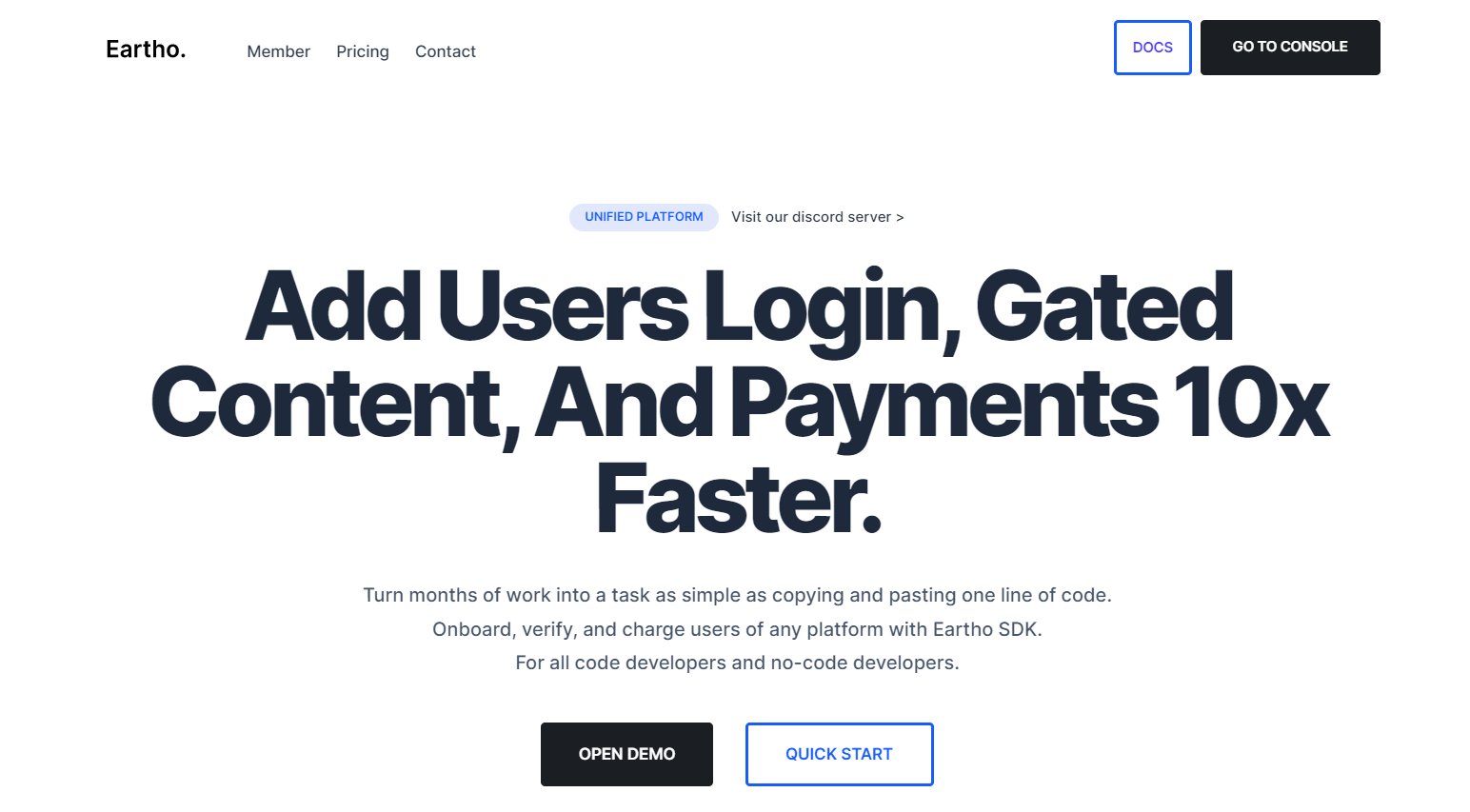 Eartho позволяет генерировать бесплатные страницы или страницы входа, куда могут заходить все пользователи, а также отдельные «точки доступа» для владельцев платных аккаунтов или пакетов услуг. Все остальное, включая контроль логинов, токенов, платежей, серверную часть и интерфейс Eartho берет на себя.