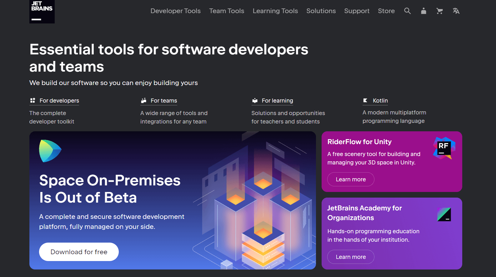 Среди инструментовJetBrains для разработчиков есть сразу несколько IDE, полноценных сред разработки с широким функционалом. Такие решения как WebStorm, GoLand, Fleet и другие уже успели завоевать любовь разработчиков по всему миру. Здесь вы найдете необходимые инструменты для оперативного выполнения как привычных, так и нестандартных рабочих задач. Среды разработки от JetBrains понравятся как начинающим, так и опытным разработчикам. Скажем сразу, это платные продукты, но они существенно экономят ваше время, помогая выполнять работу в среднем на полчаса быстрее обычного.