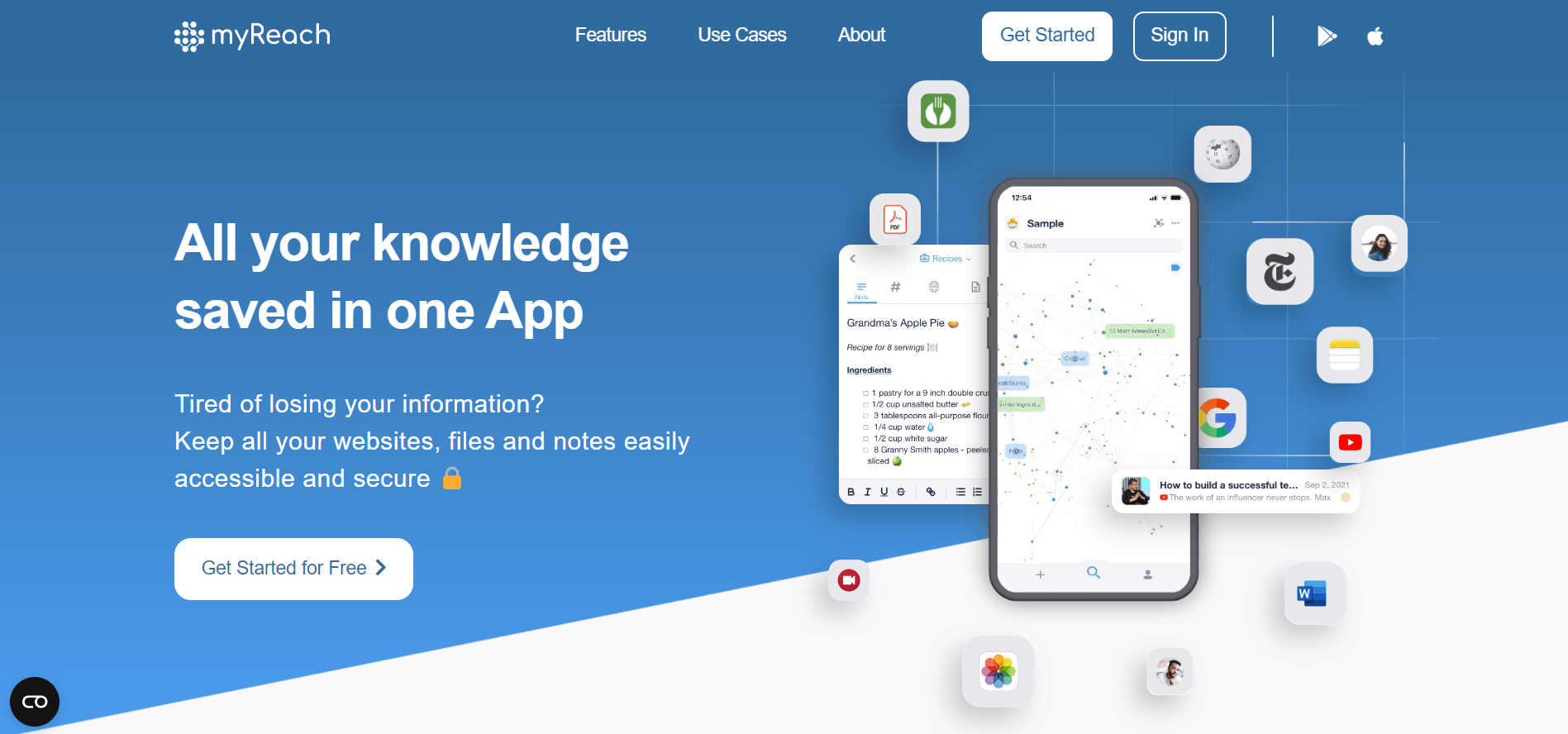 Отличное приложение myreach.io для удобного хранения полезной информации с большим потенциалом. Его особенность в том, что здесь можно соединять между собой сохраненный контент. Например, статья в блоге рекомендует книгу. Вы связываете их друг с другом, создавая таким образом сеть в своей электронной библиотеке.