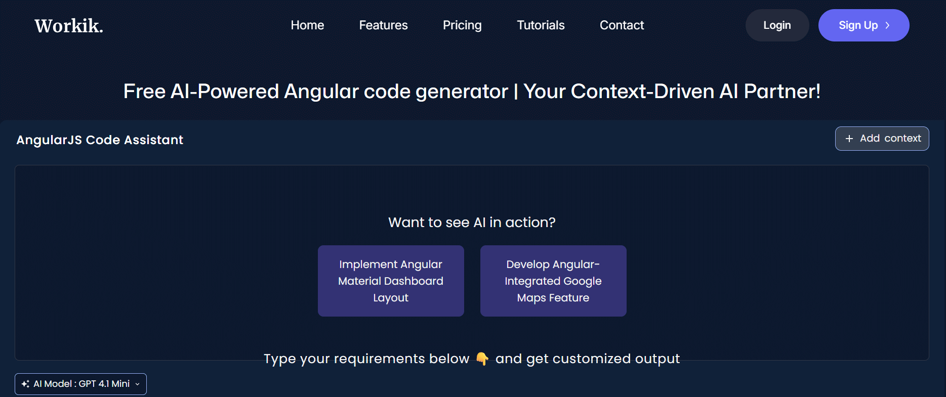 Workik AI Angular Code Generator