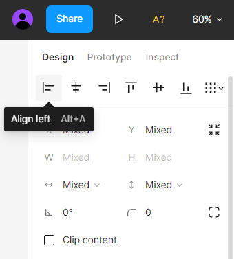 - Передвиньте курсор к блоку выравнивания вверху правой панели (раздел «Design»)