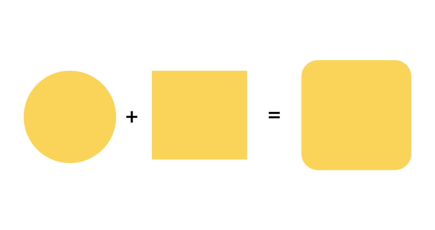 На том же примере видно, что базовые фигуры, в нашем случае круг и прямоугольник, каждый раз соединяются в единое целое одним и тем же способом и дают на выходе прямоугольники с закругленными краями. Процесс делится на 2 шага: