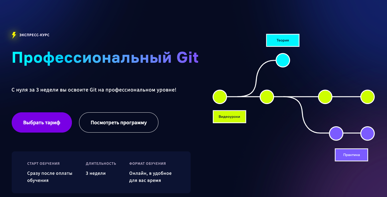 В онлайн-школе Айтилогия помимо основного курса, благодаря которому вы сможете получить профессию веб-разработчика, есть экспресс-курс «Профессиональный GIT». Git — один из важнейших инструментов в арсенале современного разработчика! Курс поможет разобраться с Git на профессиональном уровне.