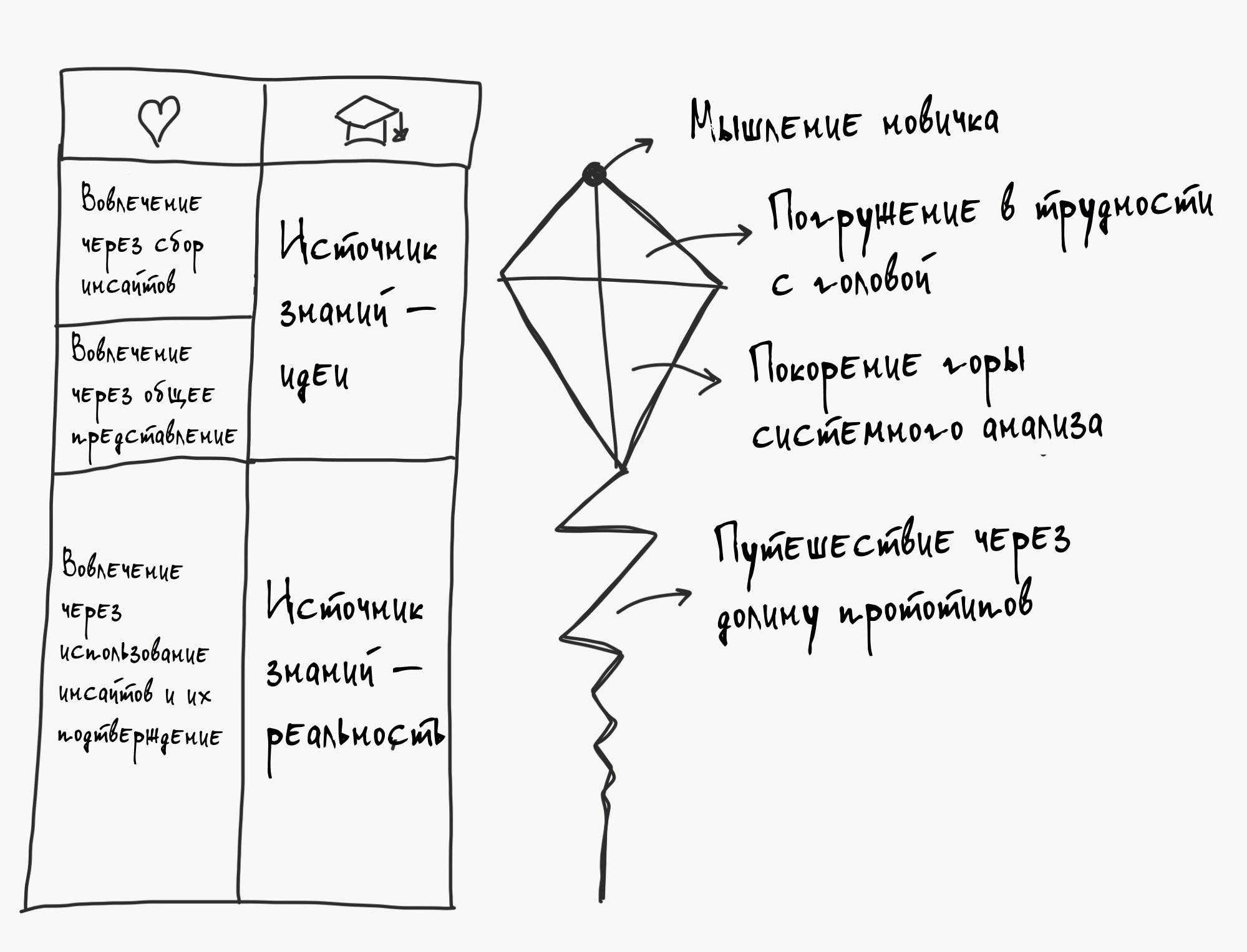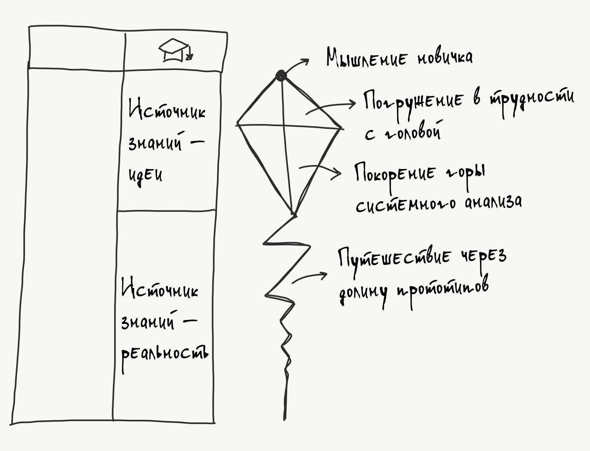 Путешествуя по модели «воздушного змея», мы учимся. Но на разных этапах это обучение проходит по-разному. На первых двух этапах источник новых знаний — идеи. На последнем мы учимся у реальности.
