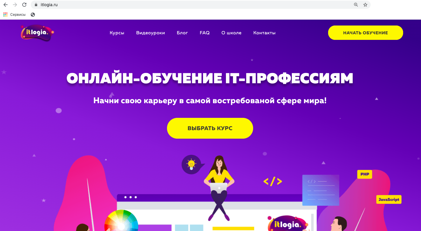 Домен — это имя сайта. Когда мы набираем в строке браузера определенную комбинацию, например, «itlogia.ru», мы попадём на сайт: