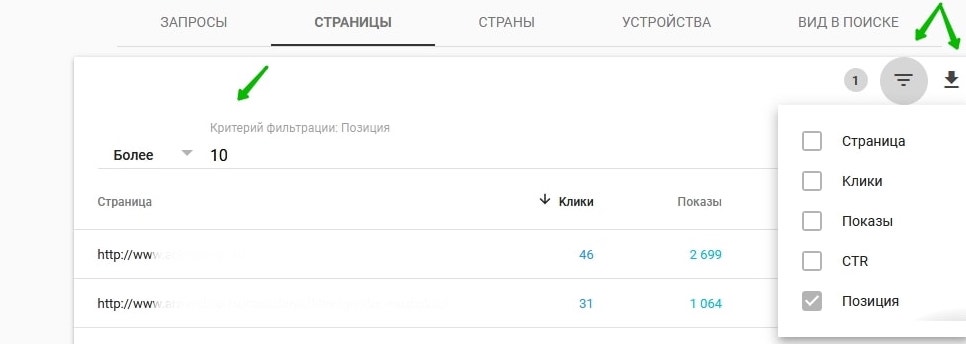 В Google Search Console посмотреть самые популярные страницы сайта можно так: