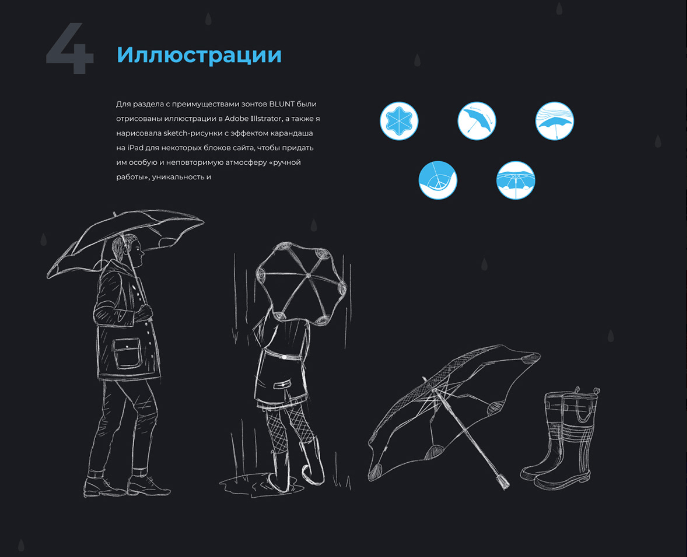 6. Расскажите о каких-то фишках, необычных техниках или элементах проекта, покажите их. Это могут быть трендовые, небольшие детали вроде рисованных элементов или анимированных заголовков.
