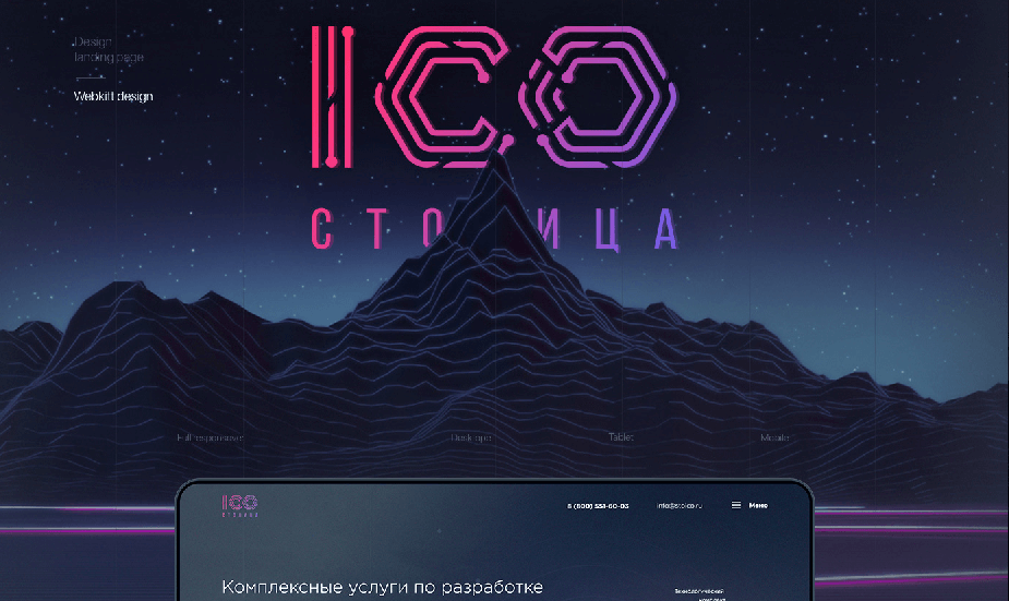 - главный блок представлен как скриншот в мокапе телефона или ноутбука;