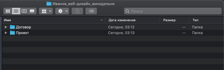 В папке каждой компании вы можете создать две основные подпапки – «Проект» и «Договор».