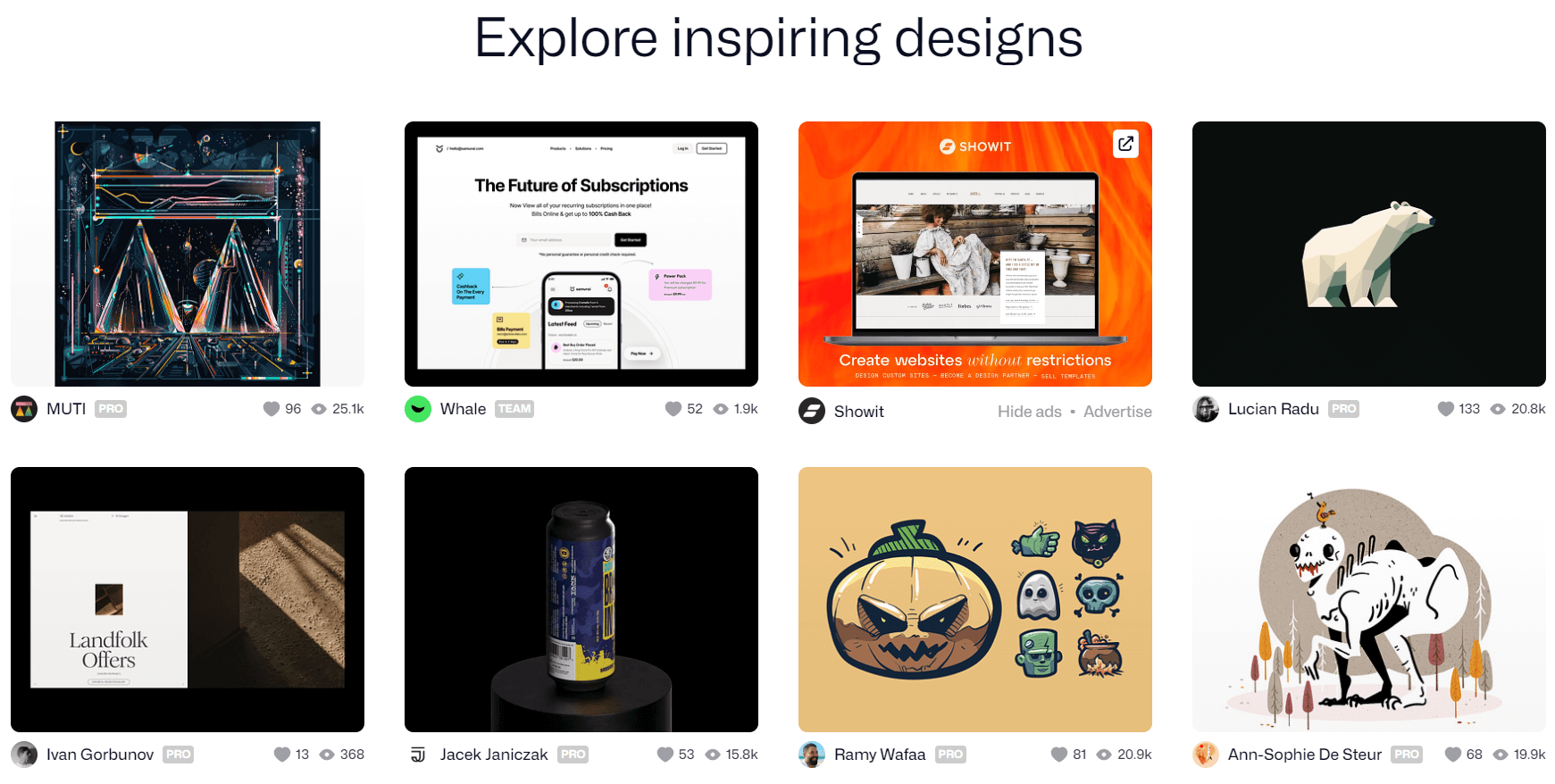 Примеры вдохновляющего UI-дизайна можно найти на веб-ресурсах вроде Behance, Pinterest и Dribbble, сайтах рекламных агентств, в соцсетях известных дизайнеров и на других площадках, к примеру: