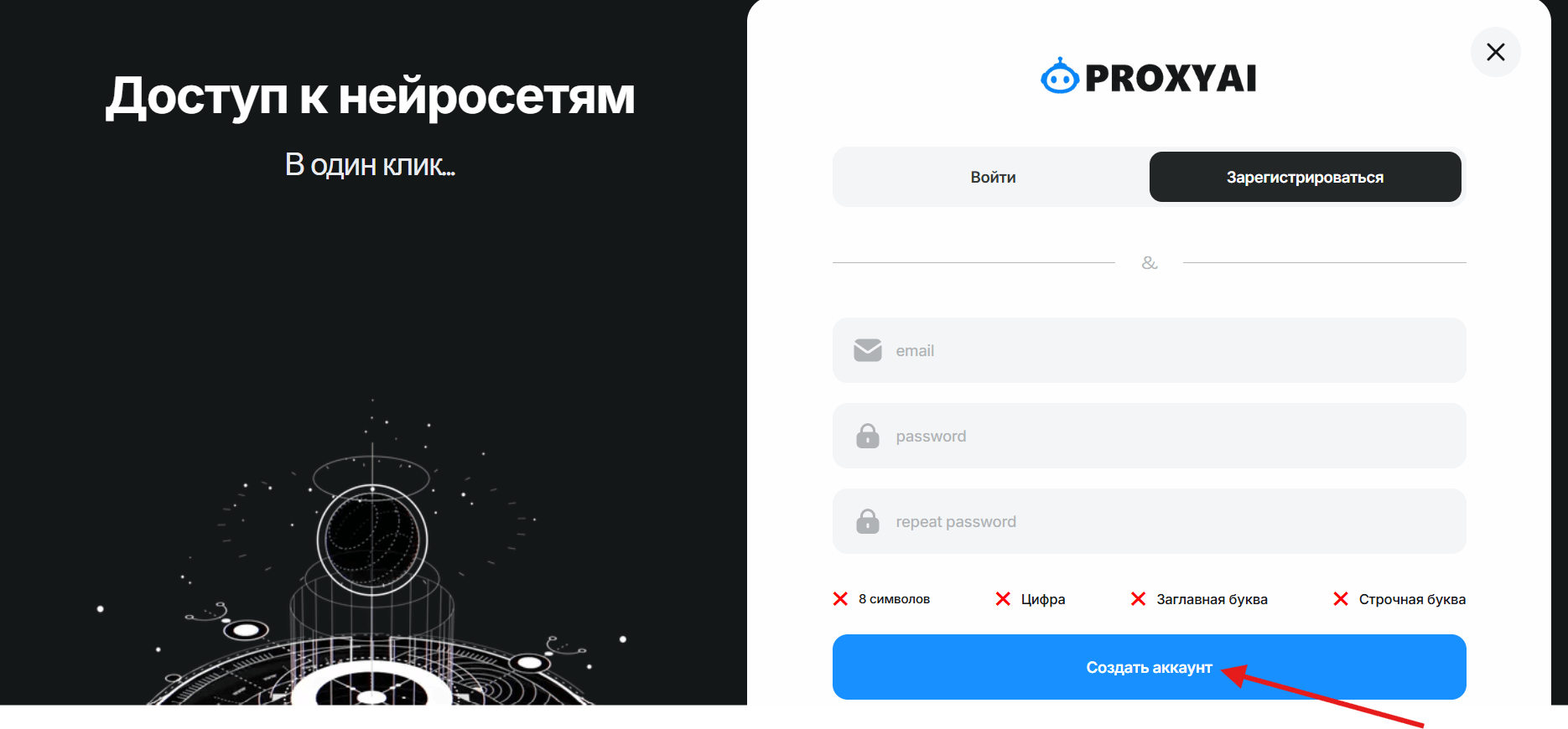 - Переходим на главную страницу ProxyAI.