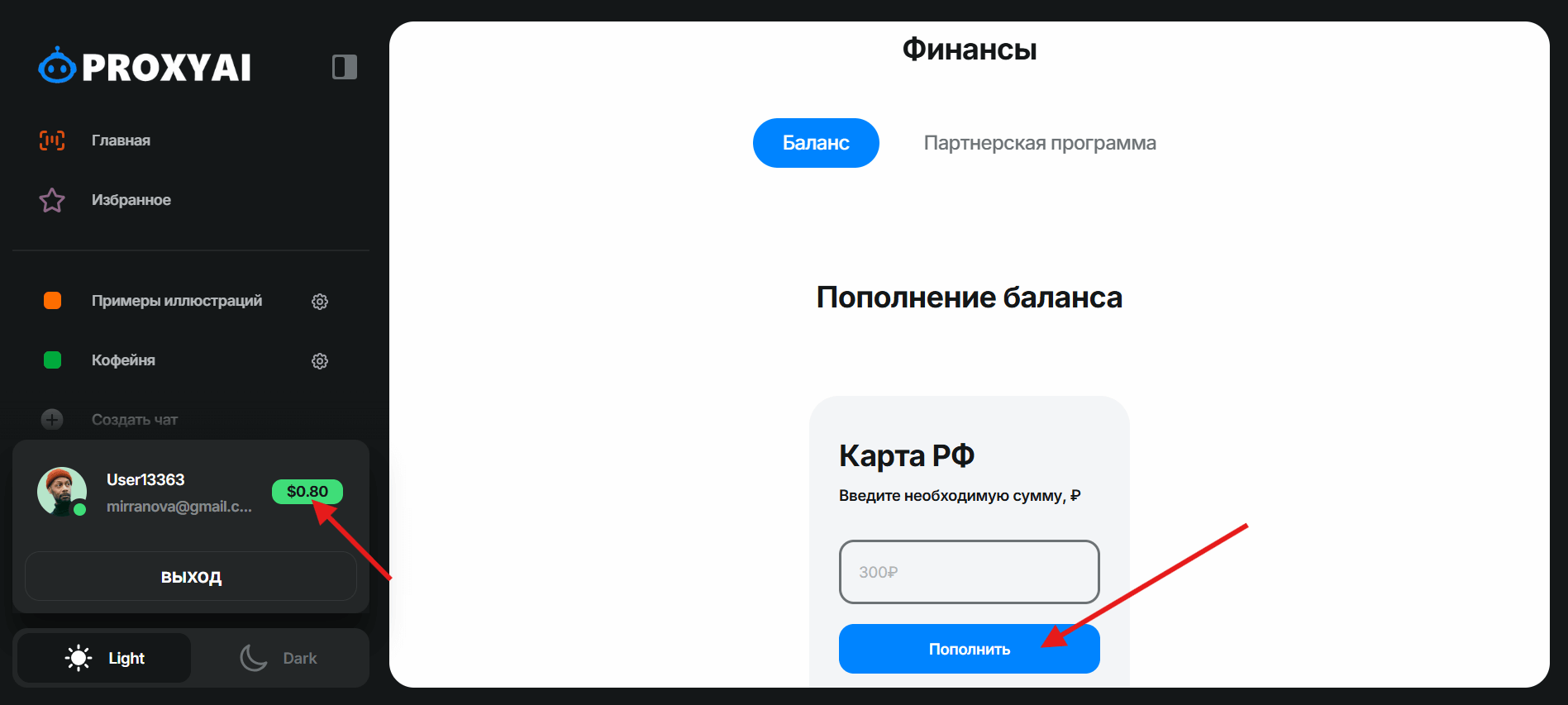 - Пополняем баланс с любой российской карты, нажав на зеленую кнопку со значком $ рядом с именем вашего профиля в боковой панели сайта. Минимальная сумма платежа 100₽, этого хватит примерно на 19-20 базовых операций. Вполне достаточно для знакомства с базовыми функциями.