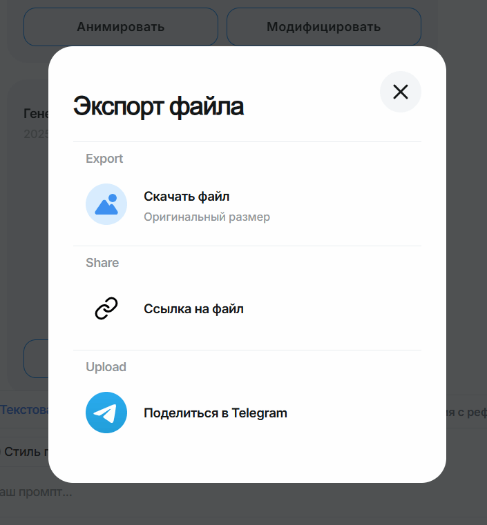 - Превратить в анимированный ролик. Но учтите, за анимацию изображений с баланса списывается существенно больше средств, чем за генерацию картинок.