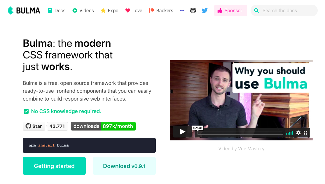 Bulma — отличная альтернатива Bootstrap, так как имеет современный код и уникальную эстетику. Его легко использовать и импортировать в проекты, а также он поставляется с различными готовыми компонентами.