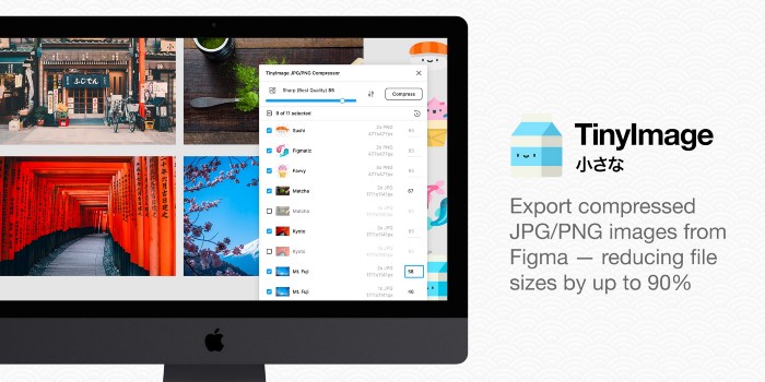 Этот замечательный плагин может сжимать размер ваших файлов до 90% и делает это лучше, чем обычный экспорт из Figma. Также плагин имеет массу интересных функций: он поддерживает не только сжатие и экспорт файлов разных размеров и форматов, но также оптимизацию прозрачных PNG и прогрессивных JPEG. TinyImage Compressor запоминает настройки во время экспорта, а при экспорте нескольких изображений плагин автоматически экспортирует их как папку .zip. Единственный минус плагина – наличие лицензии. После 15 сжатий файлов через TinyImage вам будет выслано предложение о ее приобретении.