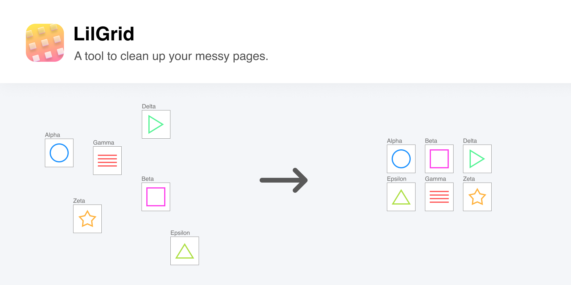 Если вам нужно организовать большое количество кнопок или значков в вашей дизайн-системе, LilGrid станет вашим верным другом. Он убирает все неупорядоченные элементы в системе и организует их в виде сетки, которую вы определяете сами. LilGrid не меняет элементы вашего дизайна, а только упорядочивает их расположение на холсте.