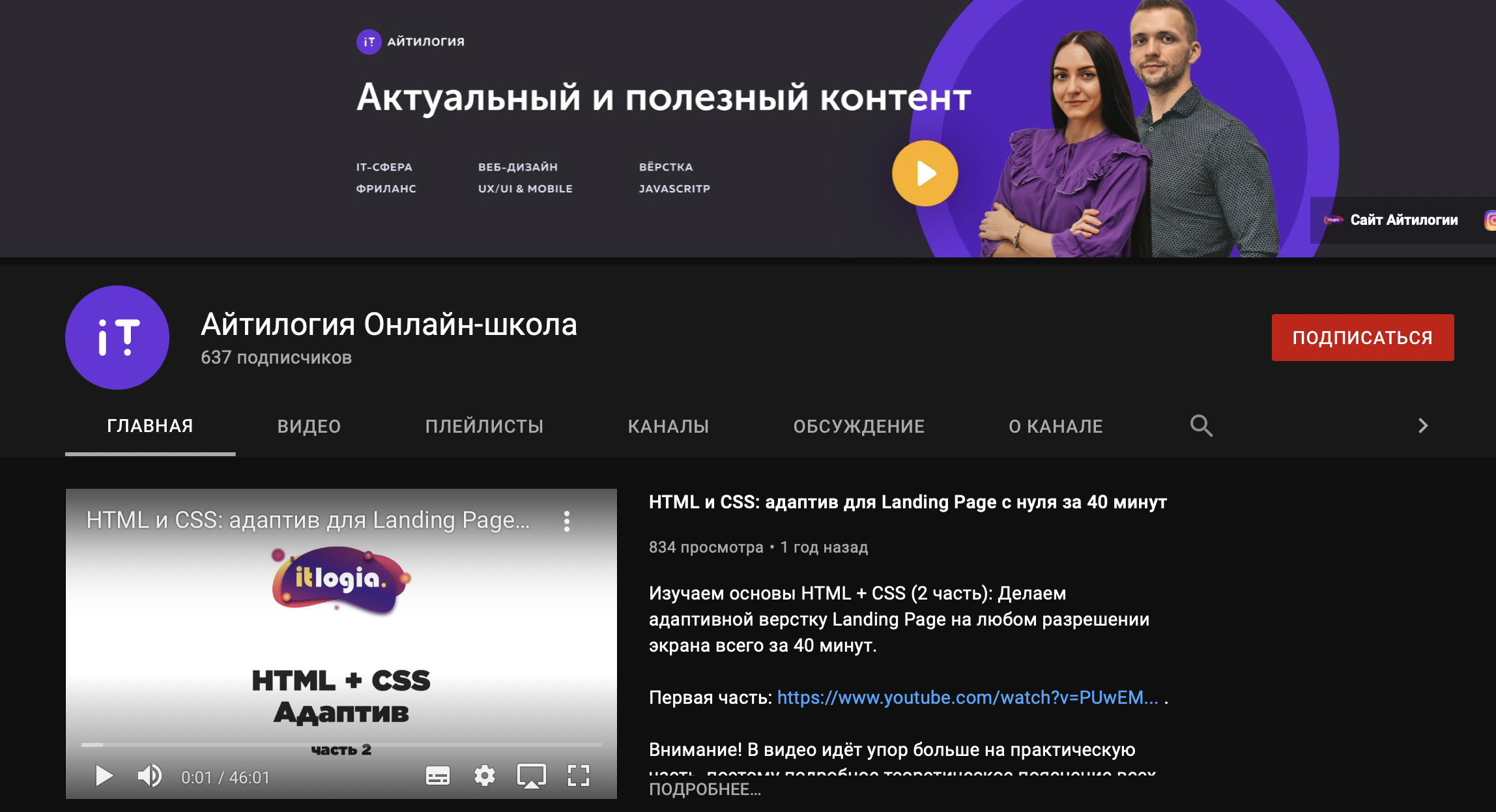 У онлайн-школы Айтилогия есть YouTube-канал, где вы сможете найти большое количество обучающих видео, которые будет полезно посмотреть как новичкам, так и опытным специалистам.