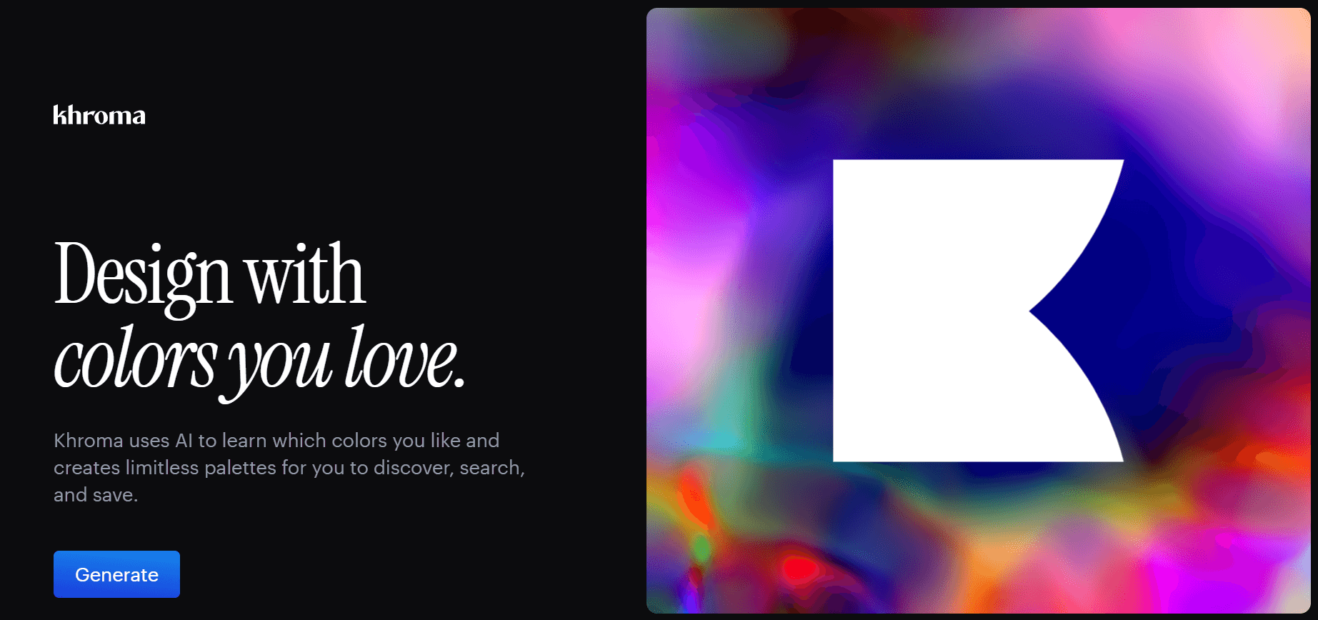 Существует немало сервисов для подбора цветовых палитр и схем, но мы решили остановиться на Khroma, потому что он полностью бесплатный и не требует VPN. Этот сервис использует искусственный интеллект, чтобы создавать гармоничные и эстетичные цветовые схемы для сайтов и приложений на основе пользовательских предпочтений.