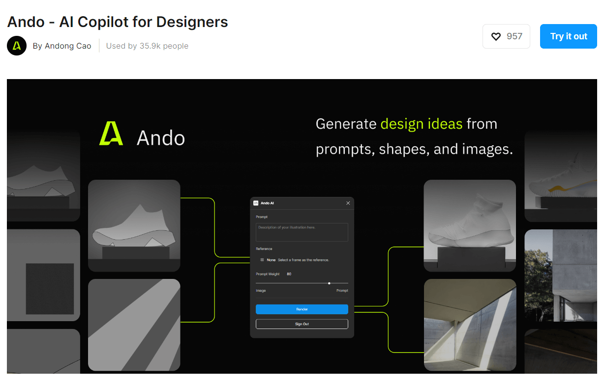 Создатели называют Ando AI «вторым пилотом для дизайнера». Он создает изображения на базе текстового запроса, геометрических фигур или других картинок. Это отличный помощник для генерации идей. Бесплатно можно получить 642 изображения за 30 дней. В платной версии (18$ в месяц) можно дополнительно генерировать трехмерные иконки и иллюстрации, корректировать качество готовых изображений.