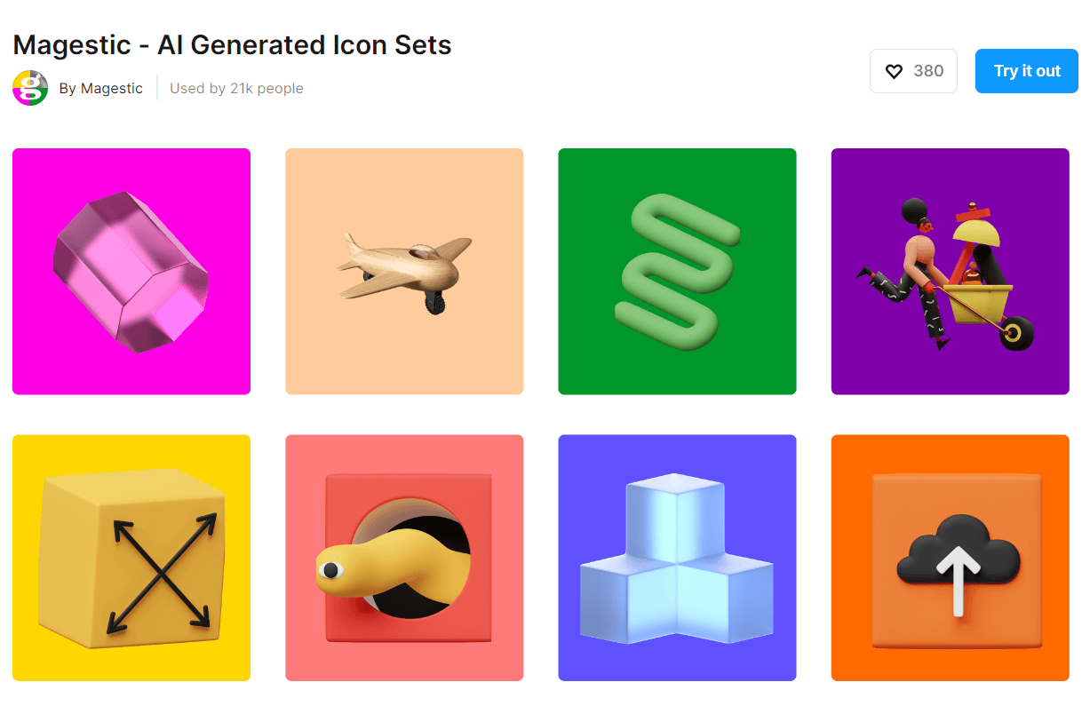 Плагин Magestic с легкостью сгенерирует для вас целый набор иконок для любого сайта или приложения. Вам потребуется авторизоваться (можно через Google-аккаунт) и составить подробный текстовый запрос, детально описывающий, что конкретно вы хотите видеть на готовых иконках. Используйте для детализации запроса готовые теги-подсказки, которые помогут задать: