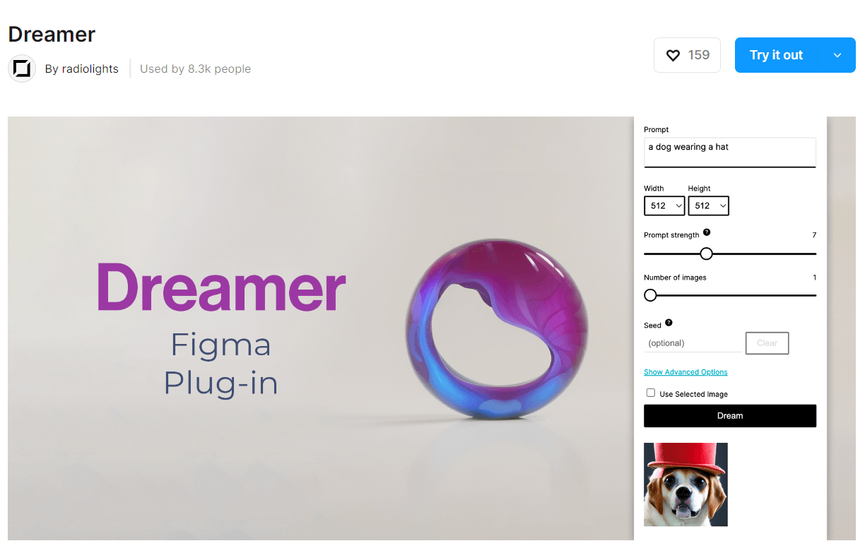 Плагин для Figma Dreamer, работающий на базе нейросети Stable Diffusion, генерирует изображения по текстовому запросу. Этот инструмент позволит создать нужные для проекта картинки и иллюстрации, не покидая графического редактора. Каждый новый пользователь получает 25 кредитов. Этого достаточно для генерации 125 изображений. Затем кредиты нужно покупать (1000 кредитов стоят всего 10$).