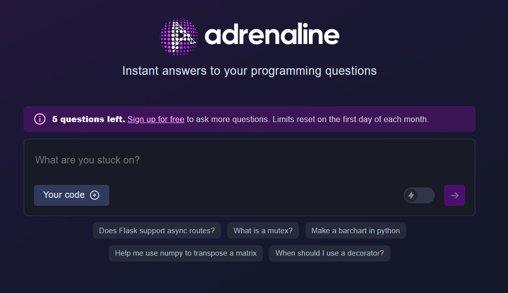 Начать пользоваться Adrenaline AI предельно просто, не потребуется даже регистрация.
