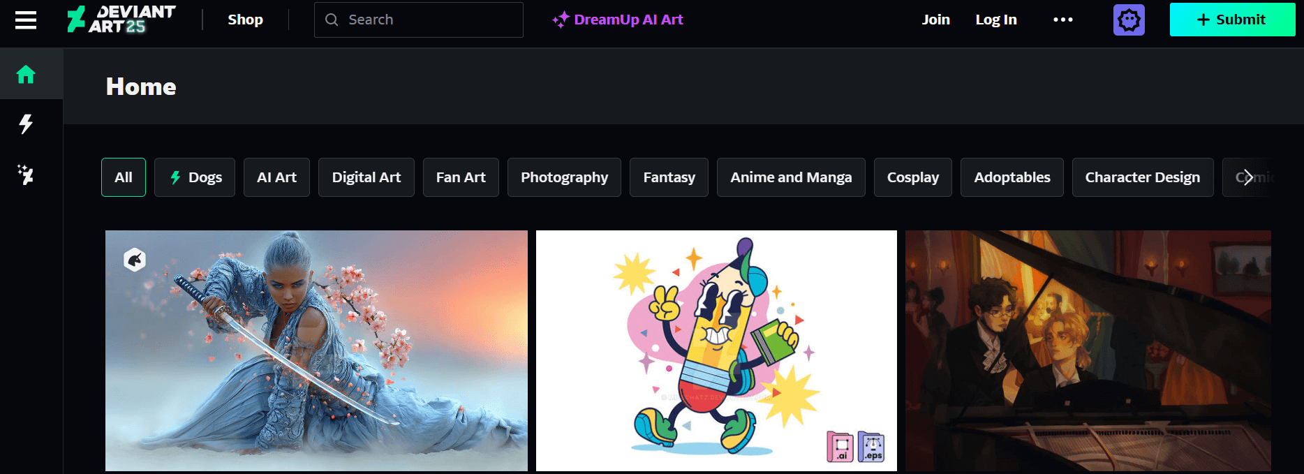 DeviantArt — целая экосистема для художников и дизайнеров. Здесь можно публиковать цифровое и традиционное искусство, участвовать в конкурсах, получать обратную связь и находить вдохновение.
