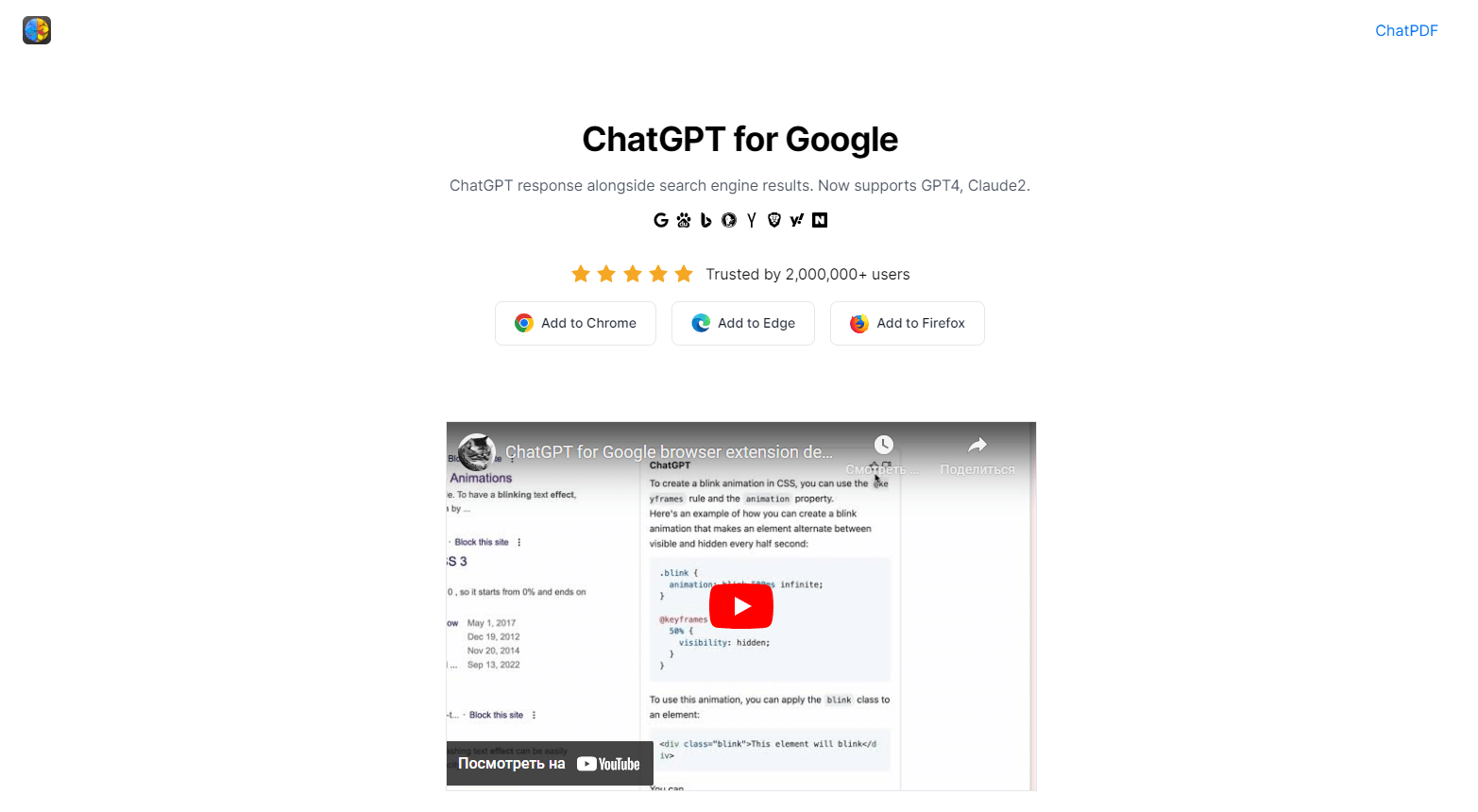 Хотите тратить минимум времени на поиск нужной информации в Google? Тогда прокачайте любимый поисковик с помощью браузерного расширения ChatGPT for Google. Это расширение добавляет к результатам поиска Google ответ на ваш запрос, сгенерированный ChapGPT. Установить ChatGPT for Google можно в браузеры: