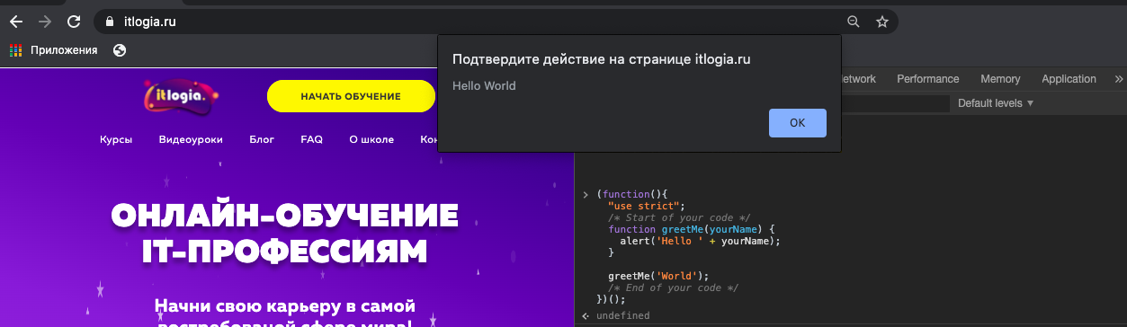 Чтобы начать писать код на JavaScript, откройте веб-консоль и напишите свой первый код JavaScript «Hello world»: