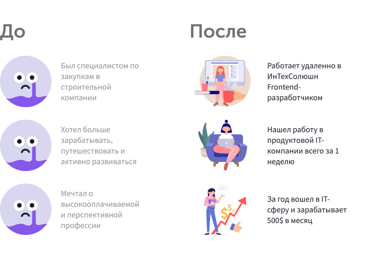 — Я сейчас всем, кто интересуется, как я смог за год перейти в IT, советую пройти 7-дневный интенсив «Frontend Start» в Айтилогии. Потому что я сам решился на полноценное обучение новой профессии именно после участия в этом бесплатном интенсиве. И если он вам понравится, то нужно идти на основной курс «А что до страха, то я думаю, что просто в какой-то момент стремление жить лучшей жизнью должно стать сильнее любых опасений. И тогда все само собой придет в движение.