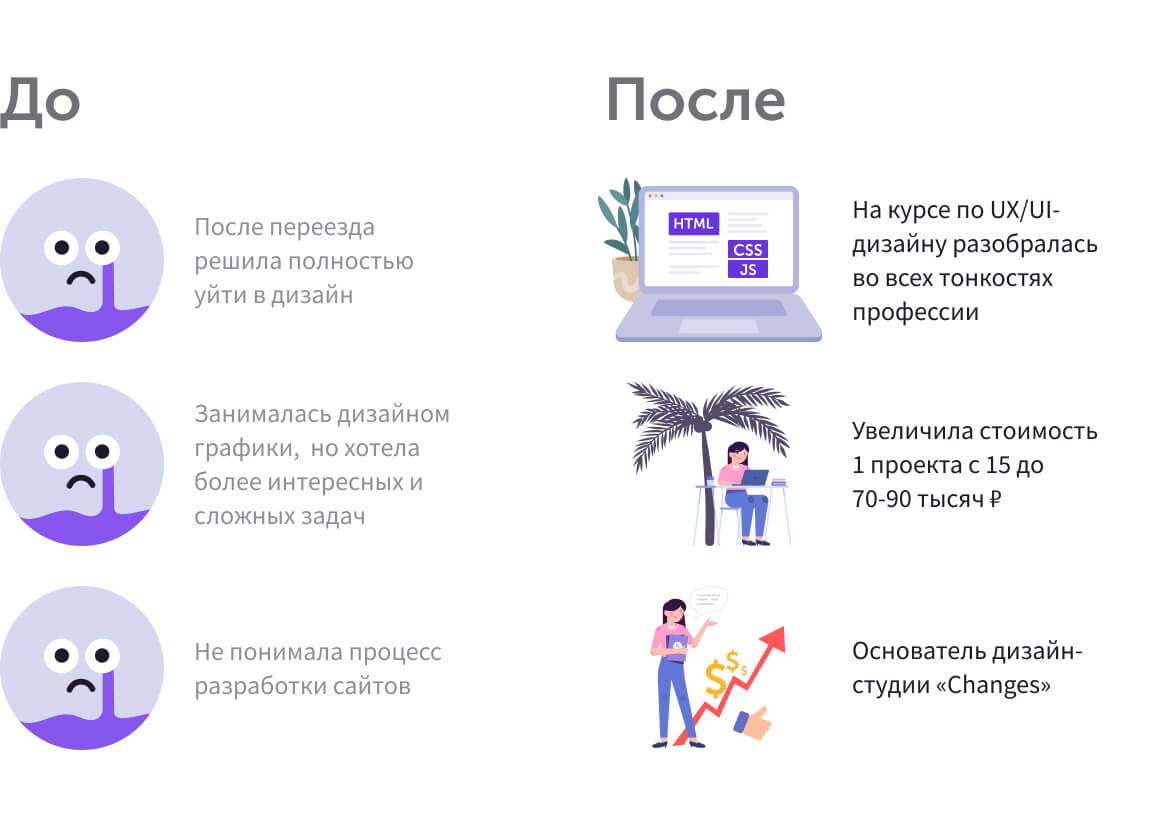 — Главным результатом своей учебы на курсе «Профессия UX/UI-дизайнер» считаю то, что мне удалось закрыть все пробелы в этой области. У меня сложилась полная картина того, что собой представляет UX/UI-дизайн, в чем его ценность для заказчиков, из каких этапов складывается работа над проектом и что нужно делать на каждом этапе. Я стала гораздо увереннее в своих силах и качестве работы нашей студии, могу подробно обосновать клиентам, из чего складывается цена наших услуг, почему необходим, например, сначала анализ конкурентов и дизайн-макет в Figma, который потом передается на сборку. Наконец я четко поняла, что представляю собой как специалист, в чем ценность моей работы для клиентов студии. Это позволило нам поднять прайс, выйти на новый уровень дохода и начать работать с более сложными и интересными проектами, а не просто собирать за 1-2 дня симпатичные лендинги для разовых задач (прорекламировать какое-то событие, например), — резюмирует наша студентка.В разговоре Анна затронула важный момент — увеличение стоимости проектов. Для многих начинающих UX/UI-дизайнеров решиться поднять расценки — это настоящая проблема, поэтому мы подробно обсудили с Анной, как она и ее команда увеличивали стоимость своих услуг.