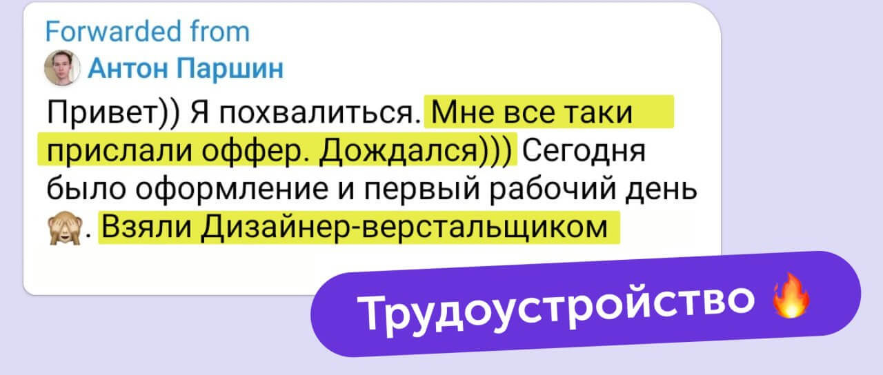 — Во-первых, он помог мне доработать резюме. Изначально в нем было слишком много информации о моей предыдущей профессиональной деятельности, и было неясно, причем тут вообще UX/UI-дизайн. Думаю, такая ошибка встречается у многих в начале карьеры в новой сфере. Несколько раз я отправлял свое резюме карьерному консультанту Айтилогии, и он помогал его улучшить, советовал, что нужно добавить, убрать или изменить. Во-вторых, я посещал прямые эфиры с карьерным консультантом, где мы разбирали типичные ошибки на собеседованиях, и это очень сильно мне помогло. — Сколько времени тебе потребовалось, чтобы получить оффер?